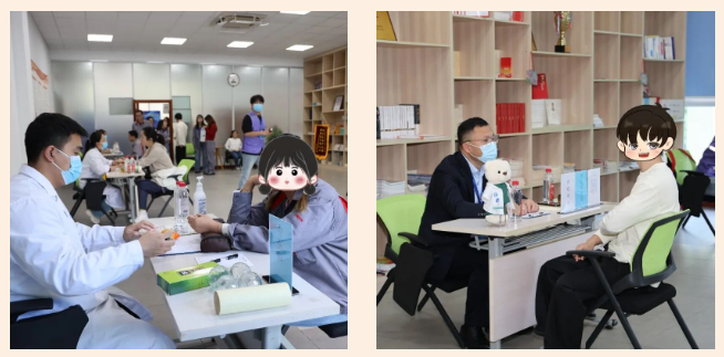 签约仪式后,在苏州金龙党群服务中心职工之家开展“健康进企业、关爱伴同行”义诊活动,苏州金龙工会工作者、管理支部党员志愿者提供志愿服务。此次义诊内容丰富、项目实用、针对性强,涵盖问诊、号脉、血糖血压测试、幽门螺旋杆菌感染测试等专业检查,提供艾灸、拔罐、推拿和膏方试吃服务,并专门开设消化道及痔疮健康咨询通道。活动现场秩序井然,前后持续两小时,苏州金龙员工依序排队问诊,我院专家仔细问诊、耐心答疑,普及疾病预防知识,增强员工保健意识。苏州金龙员工看诊后表示:“活动很实用,让我们在厂区就能享受到专业医疗咨询服务,切实感受到了组织对我们生命健康的关怀。”