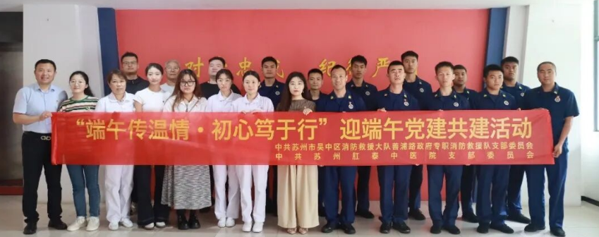 在端午节来临之际,为传承和弘扬中华民族优秀传统文化,进一步加强基层党组织建设,促进党建工作与传统文化深度融合,2025年5月23日上午,苏州肛泰中医院党员代表们来到苏州市吴中区善浦路消防中队,共同开展了“端午传温情·初心笃于行”迎端午党建共建活动。